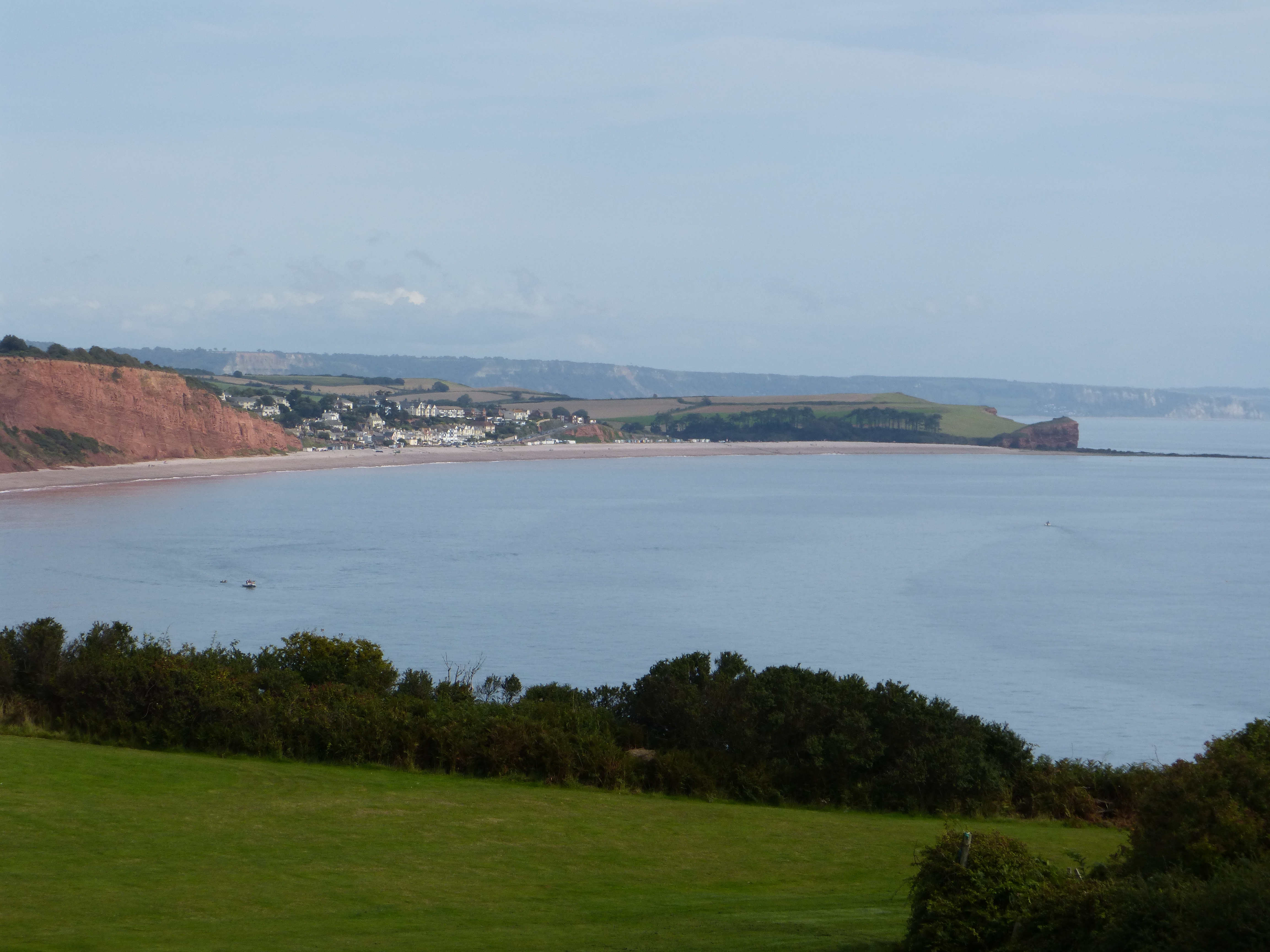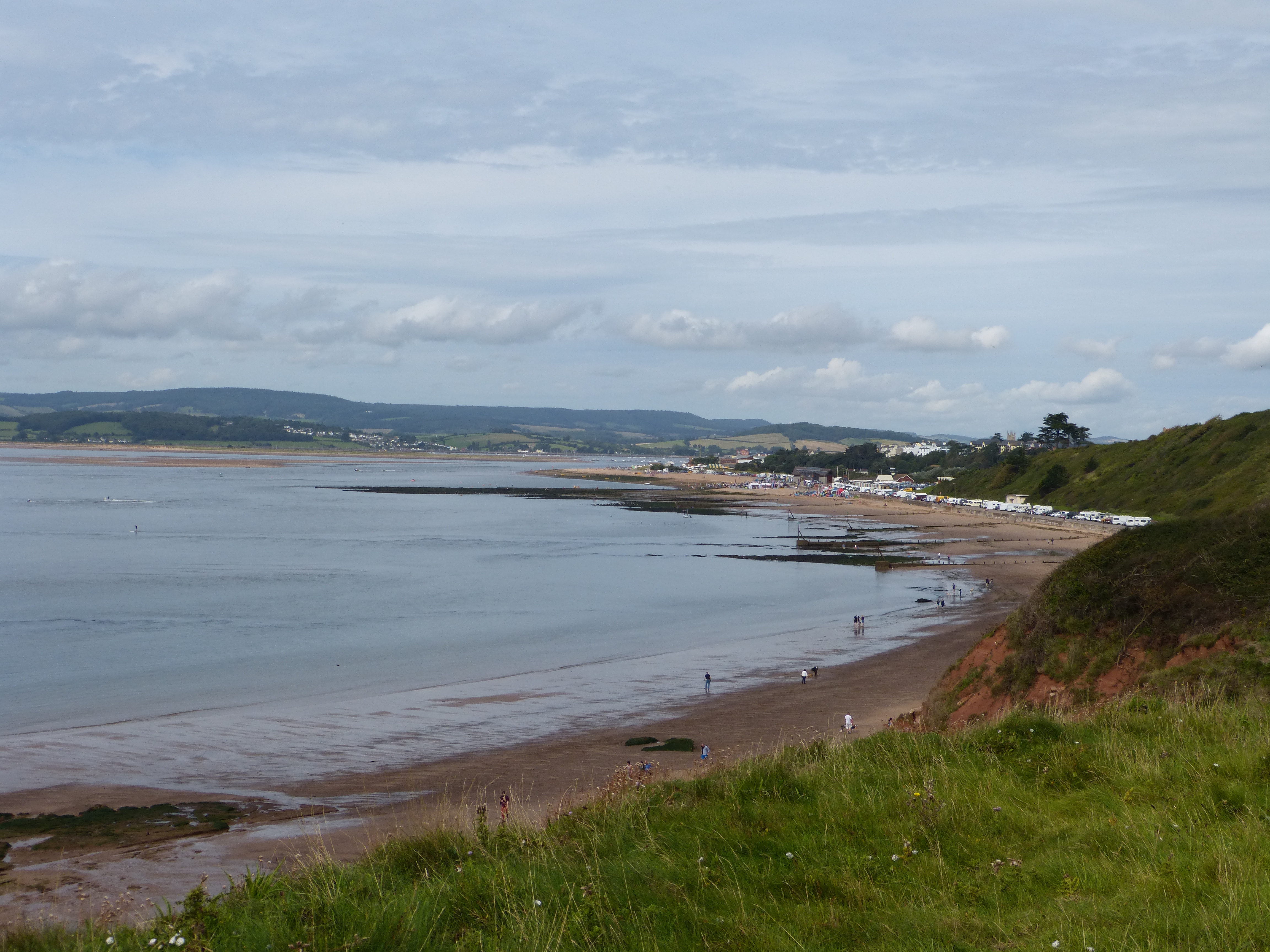 Towards the end of Exmouth beach the South West Coastal Path ascends the cliff and proceeds via Sandy Bay to Budleigh Salterton.
