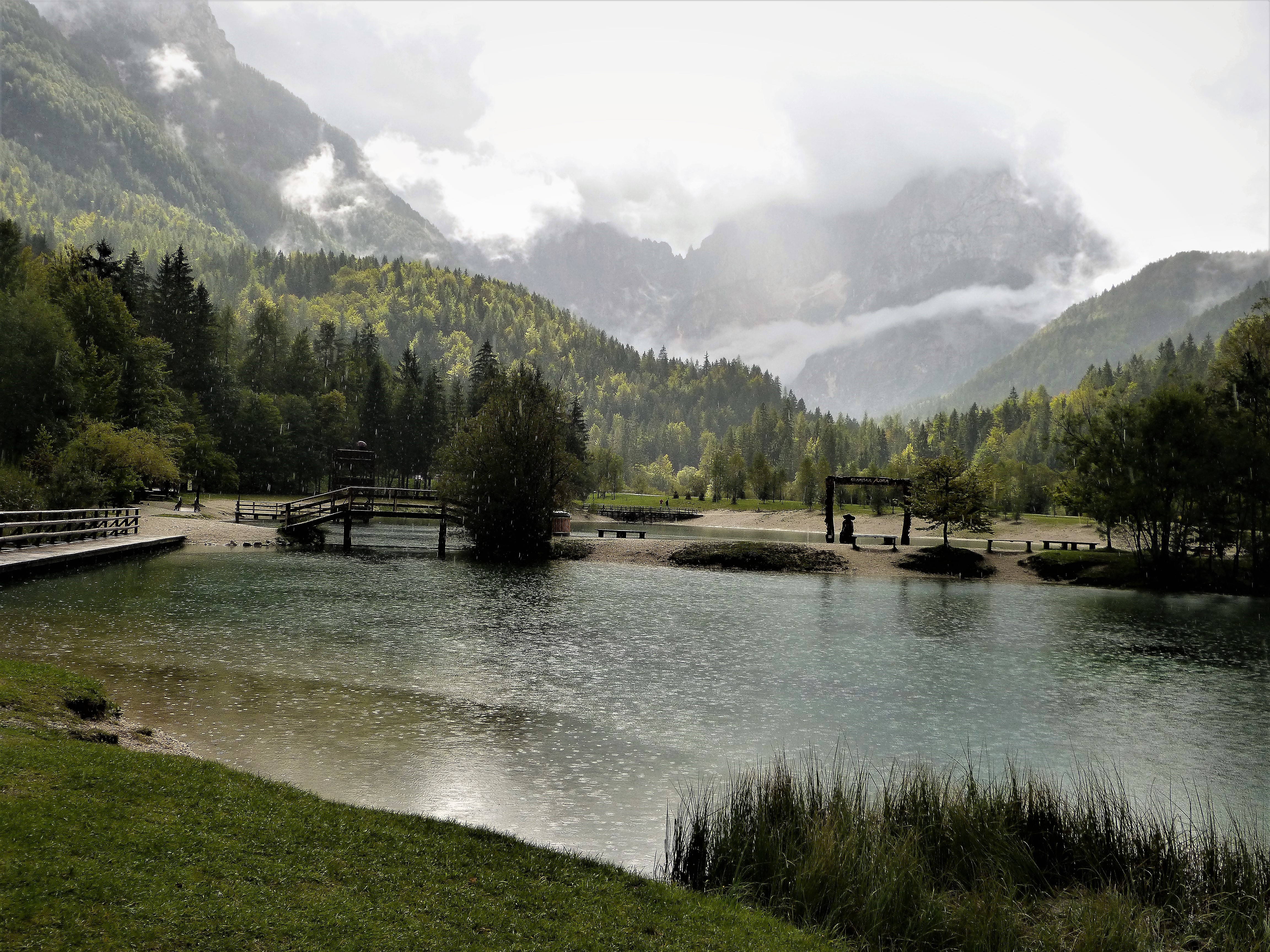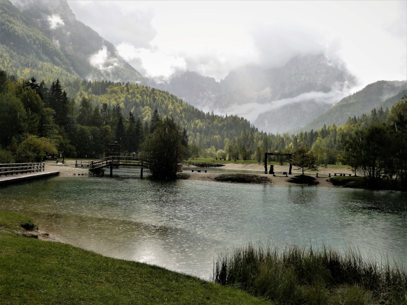 The rain was persistent but eased enough by late morning to permit a walk along the short 3,000m trail beside the Piščnica River to the impressive but artificial Lake Jasna, and back again along the other side.