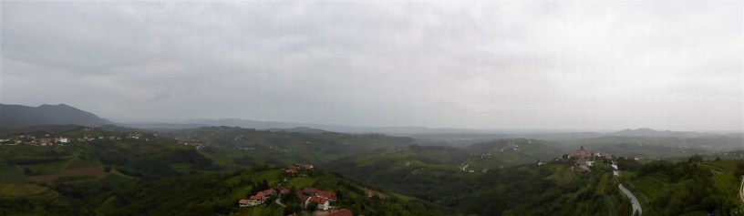 Afterwards I climbed the neighbouring 24 metre viewing tower and, braving the gale, attempted a few photos across the Italian border. Here’s a panoramic shot