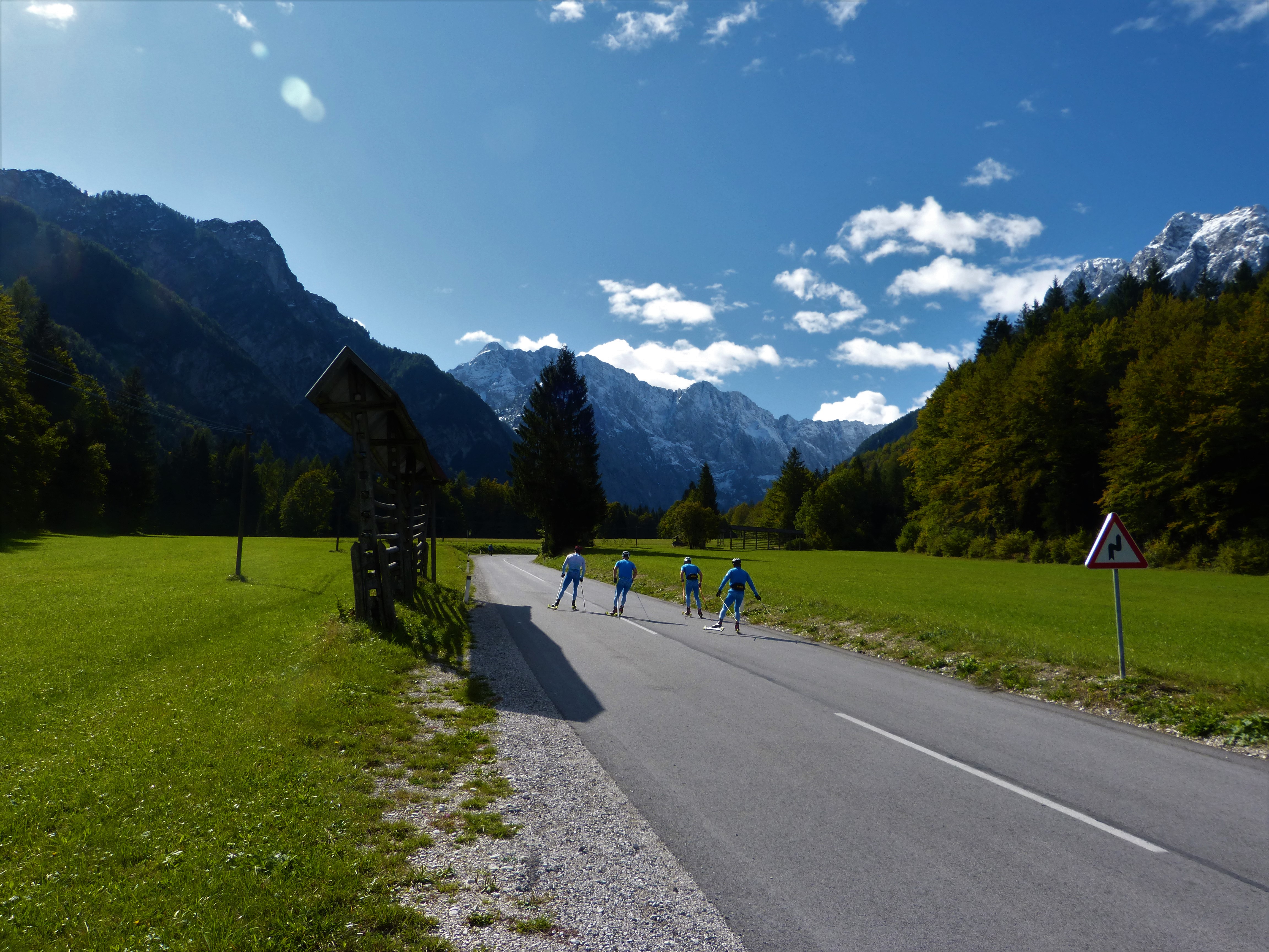 To shorten the first part of the outward journey I kept to the road out of Ribcev Laz, joining route 20 at a small village called Laski Rovt. The route is mainly through meadow, at one point featuring a small practice slope for aspiring ski jumpers.