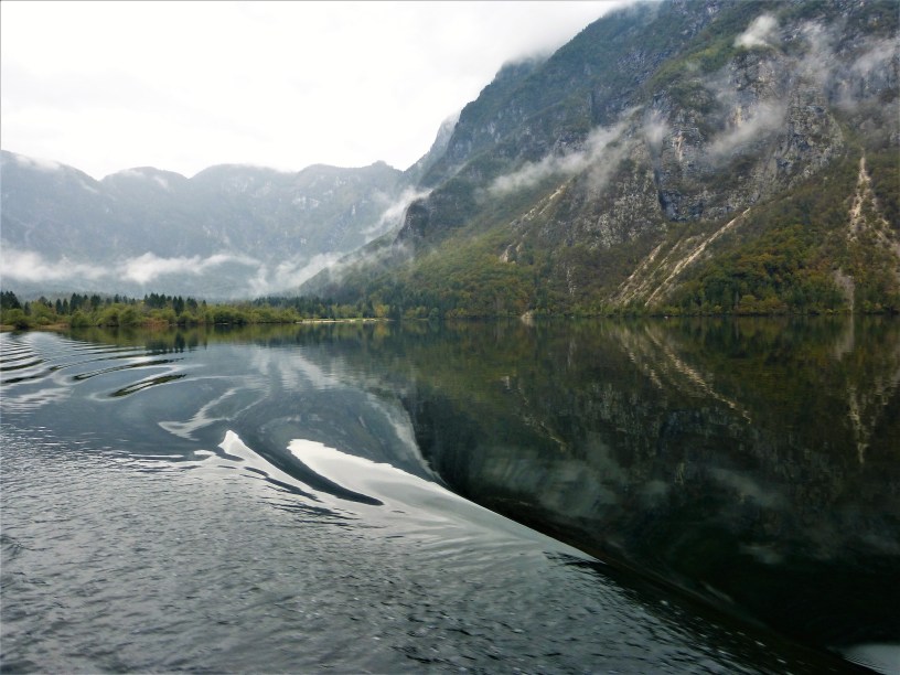 On the journey back to Ribcev Laz I became fascinated by the patterns made in the water by reflections of the surrounding mountains and the boat’s wake.