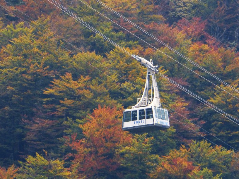 I pressed on and caught the 10.30 cable car with seconds to spare. The car takes only a few minutes to ascend almost 1,000 metres, passing an identical vehicle coming down.