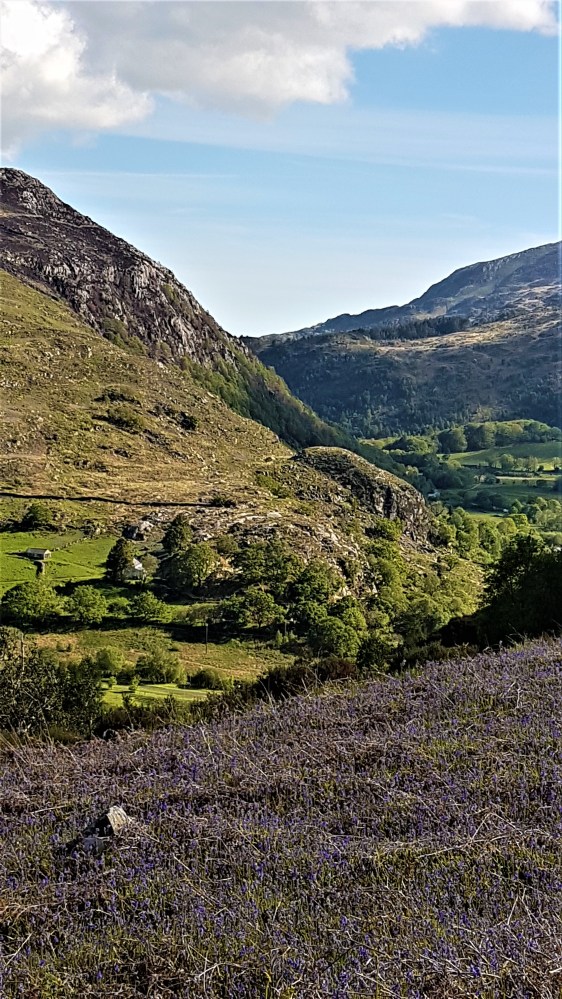 Prior to dinner on the first day many of us took an orientation walk up the hill behind Craflwyn Hall. The evening was glorious. The bluebells remained in full bloom and puffy white clouds scudded gently over the mountains.