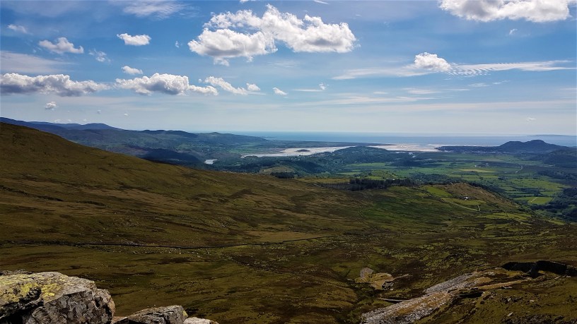 We made our way first to Llyn Dinas, a relatively shallow lake fed by the Glaslyn River. Then we climbed a steep ascent to reach heathland above before joining the Cwm Bychan valley.