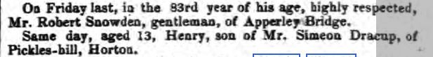 Henry is missing, having died in 1847. His one claim to fame was the brief announcement of his death in The Leeds Intelligencer of 22 May 1847.
