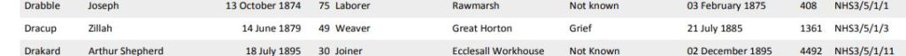 - Nathaniel Dracup (1844-1905) who married Martha Kay and seems to have been childless.