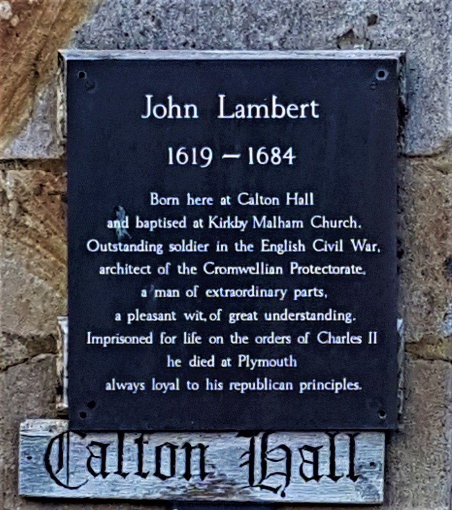 This merges into Hall Brow which leads into the small village of Calton. We paused to peer over the wall at Calton Hall, now a private residence but once the birthplace of John Lambert (1619-1684) a Parliamentarian general and Commonwealth politician who in 1653 drafted the Instrument of Government, perhaps the nearest we have come to having a written constitution.