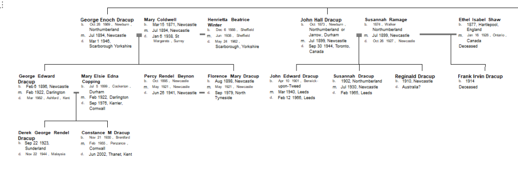 Shortly afterwards their first child, George Edward Dracup (Derek’s father) was born, on 6 February 1896, followed in short order by his sister, Florence Mary, on 24 July 1898.