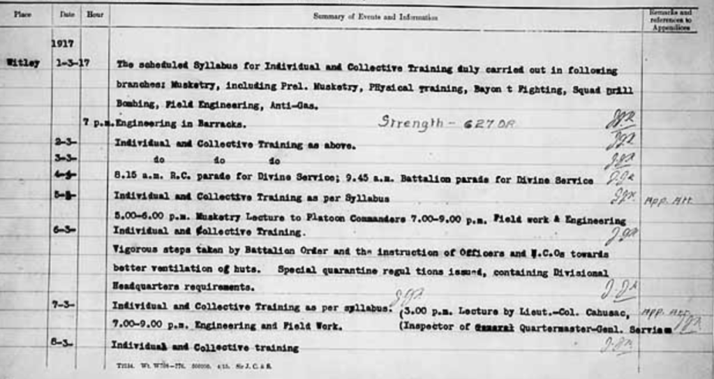 Newly married to the daughter of an American farmer who had relocated northwards in the 1890s to establish a thriving livery stable, he joined his local cavalry militia in 1914, eventually shipping to England as an infantry private in the summer of 1916.