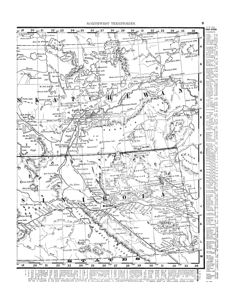 Each Range was sliced into blocks called Townships which were also numbered, according to their distance from the American border. Township 1 in each range was always closest to the border.