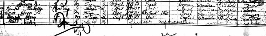 There is no sign of George in the 1906 Census of the Northwest Provinces, so it is conceivable that he had returned to Ontario for a while. Perhaps he had decided that there was no future in homesteading.