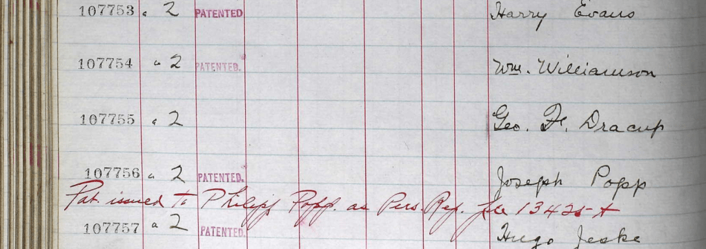 The same plot was applied for by one Gustave Conrad, an American of German extraction, in June 1906, and this was subsequently patented.
