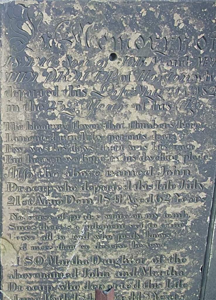 His grandfather and grandmother were Robert (1794-1866) and Amelia, nee Crosby (1799-1855), who were together responsible for establishing the Canadian branch of the Dracup family tree.