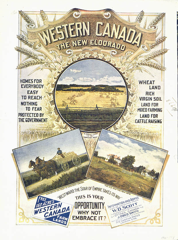The Canadian Government’s propaganda painted an idyllic picture of life on the prairies. A marketing campaign built around pamphlets and posters used the phrase ‘The Last Best West’ to entice prospective settlers.