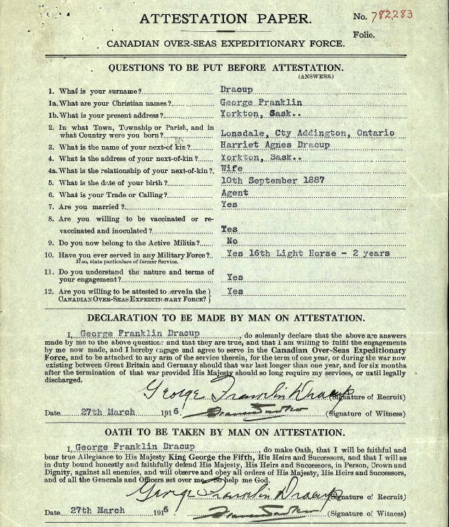Canadian George Franklin Dracup was a member of the Canadian Expeditionary Force.