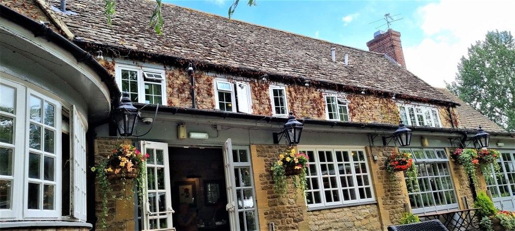 In Lechlade we stayed this time at The New Inn Hotel which we reached by 13:00. We had been allocated Room 38, located in an annex opposite Reception. It was clean and comfortable, though we later discovered that three lights weren’t working and had to request fresh bulbs.