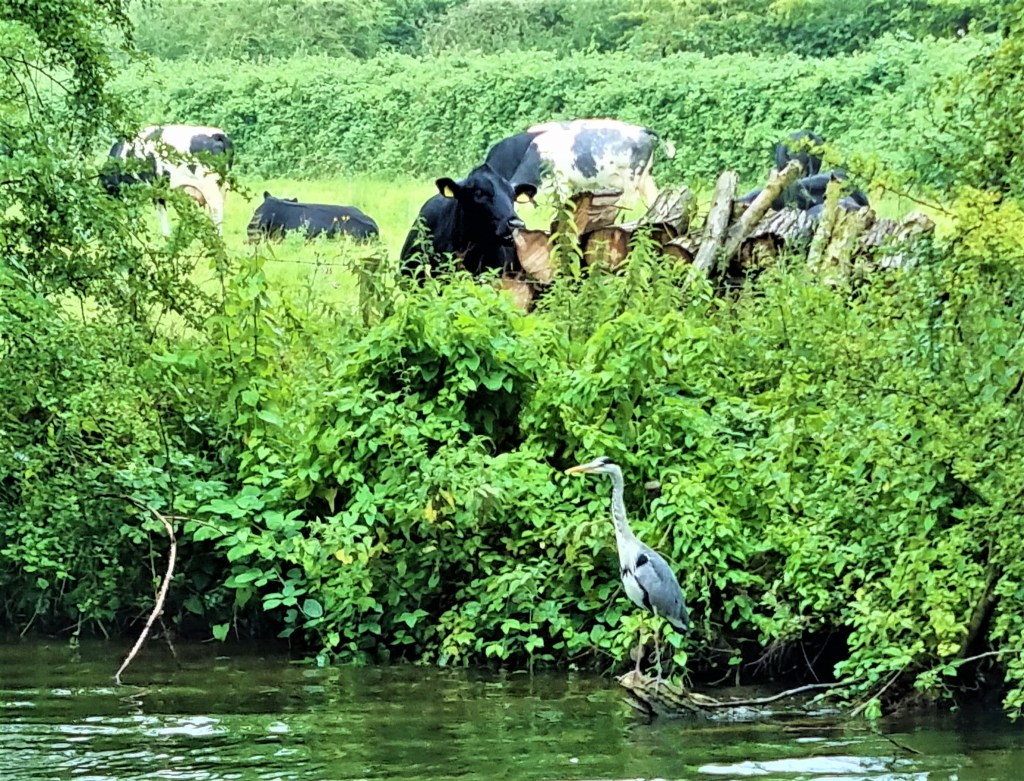 Heading into Oxford, close to Bossom’s Boatyard, we spotted this heron posing in front of a field of cows.