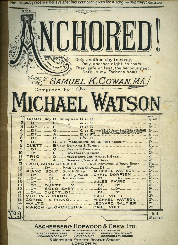 Reputedly a fine bass singer, he sang contemporary popular songs and light opera to appreciative audiences, often at smoking concerts, in pubs and music halls. He was something of a local celebrity, a popular friend and colleague.