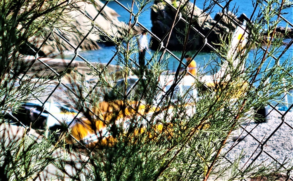 On the way off the beach we paused to help an older man who was trying to manoeuvre his kayak and trailer over a kerb.