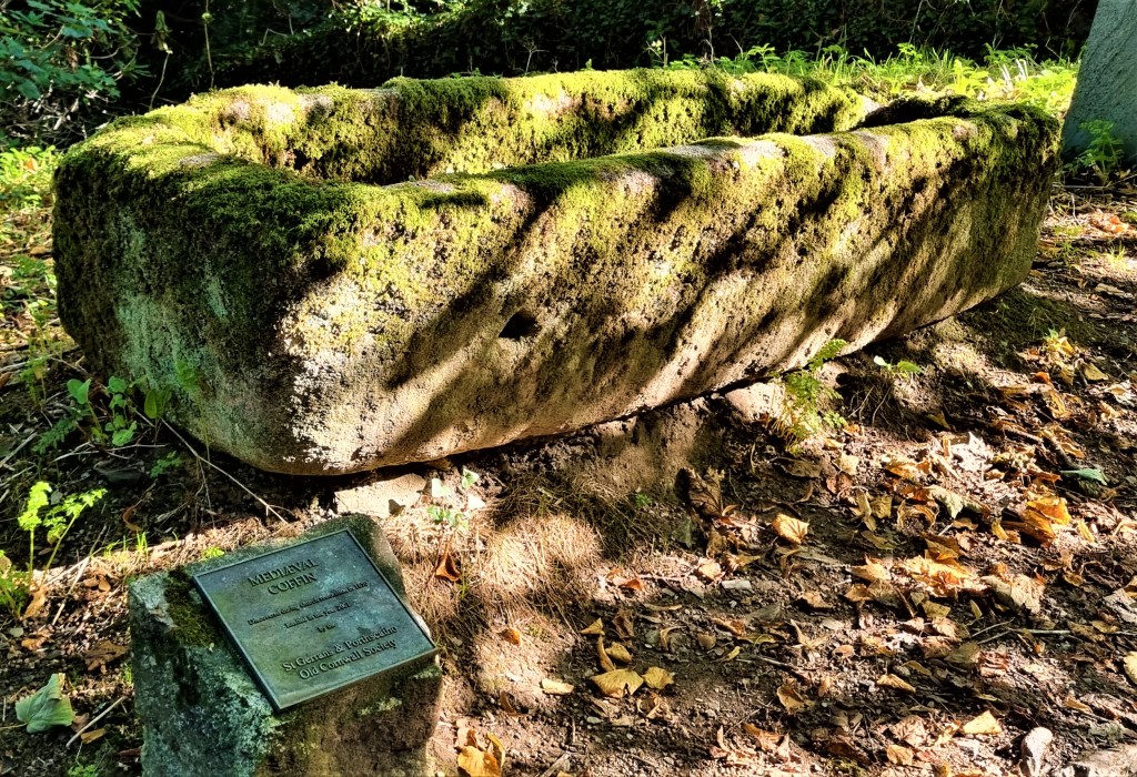 Entering St Anthony’s churchyard, we paused beside what is, allegedly, a medieval stone coffin, then admired the arch of the church doorway before entering the cool interior.