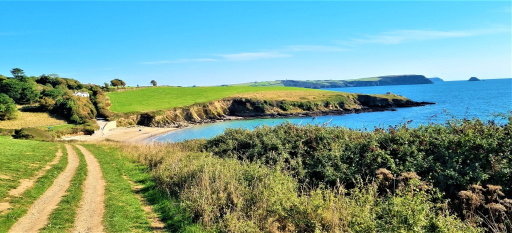 The path runs behind the beach and then around Maenease Point before beginning the run-in to Gorran Haven.