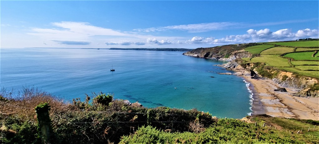 Climbing out of Gorran Haven, we enjoyed the rise and fall of the clifftop path basking in the late afternoon sun.