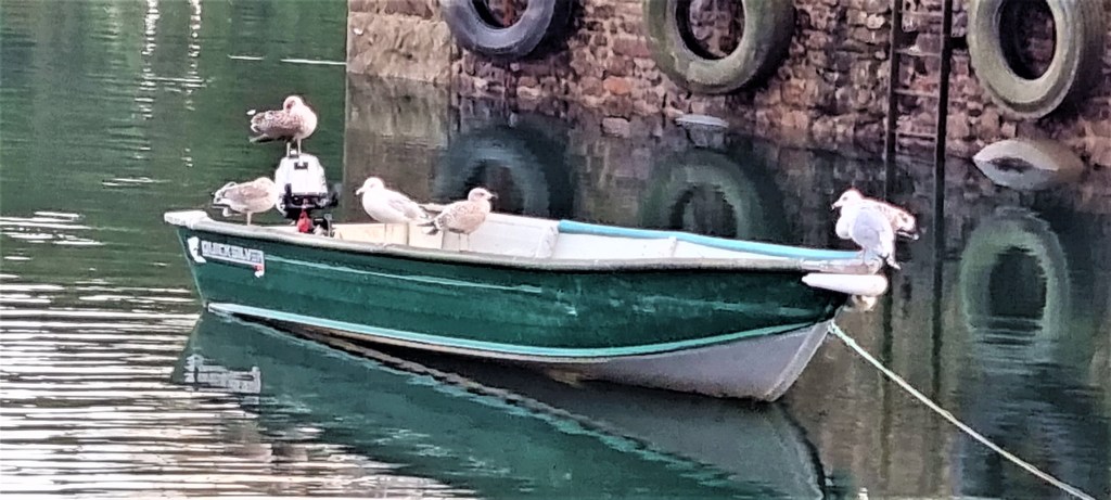 So we walked on, past the Inn, the ferry’s landing point on this side and a small line of cottages, to photograph the multitude of small boats, bobbing at their moorings below.