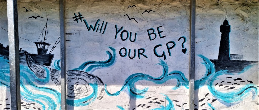 Our route took us past a hand-painted sign saying ‘Will you be our GP?’