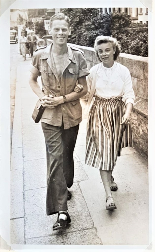 My brother set us the challenge of trying to find the exact spot where my parents were photographed when they visited Falmouth in July 1950. Mum had written ‘Arwenack Street’ in the album beside their snap.