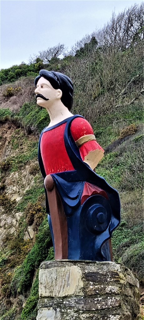 This tiny beach and harbour has its own pub, The Rashleigh Inn, which boasts this mustachioed figurehead.