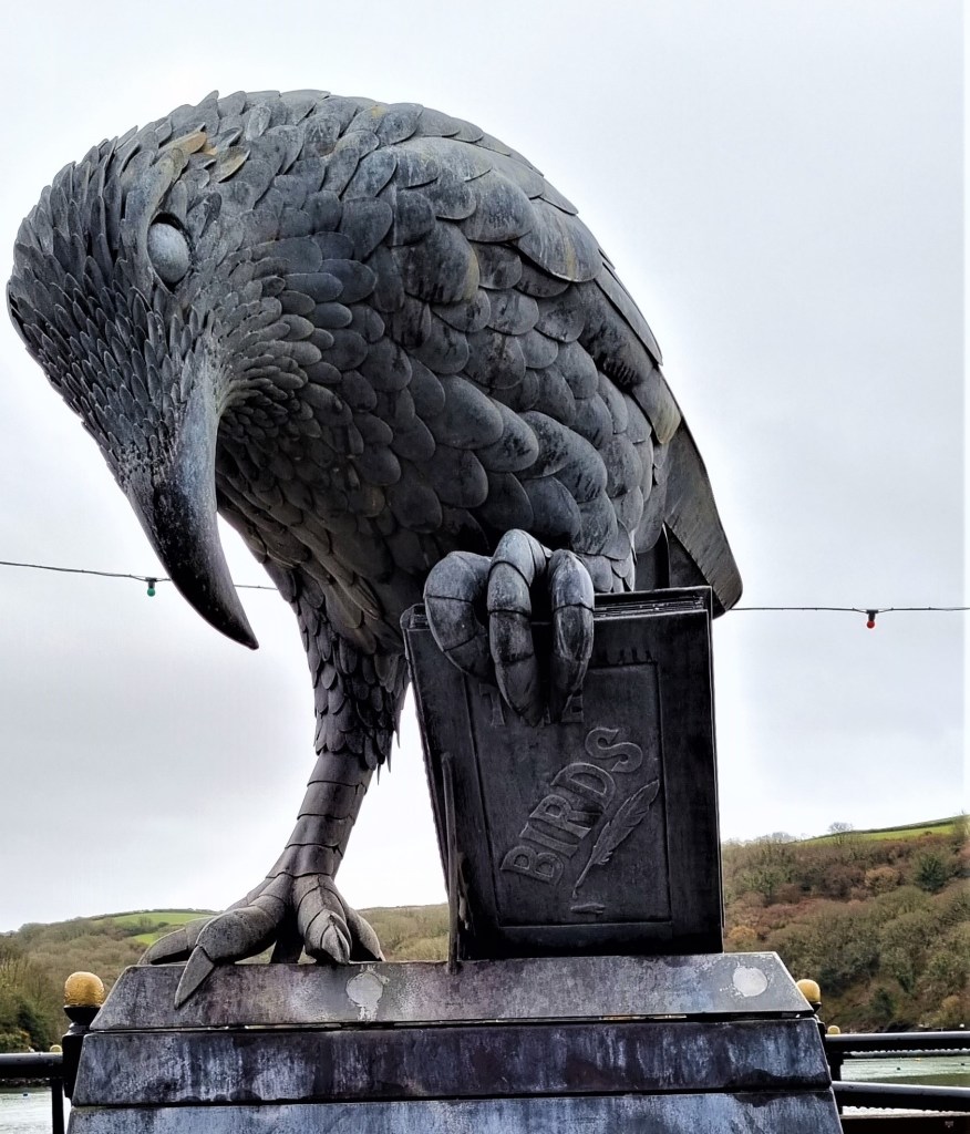 We walked through the crowds to the point where the ferry crosses over to Polruan, admired the Rook with a Book, and did a little window shopping before finding our way to the Safe Harbour bus stop for the 15:05 25 bus back to Par Station.