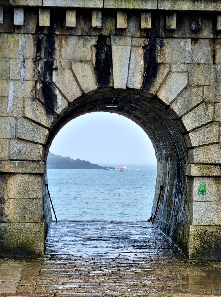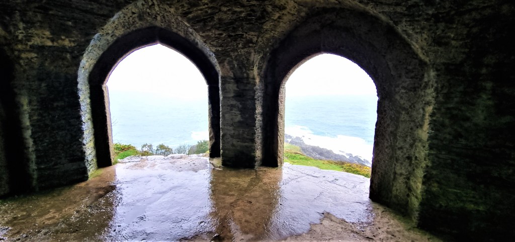 On reaching Rame Head, part of the Mount Edgcumbe Country Park, we contemplated climbing the steep slope up to St Michael’s Chapel, to find some shelter from the relentless downpour, but decided to press on instead.