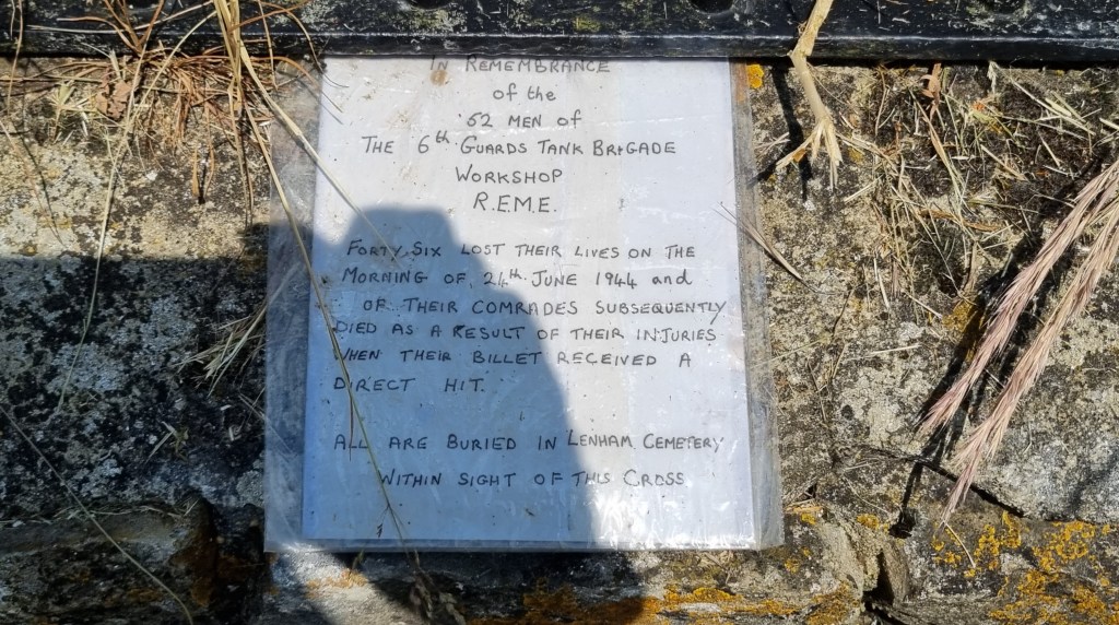 We took our lunch at the Lenham Memorial Cross, curiously a listed building, which was constructed by local volunteers in 1922, according to the design of the Village’s headmaster.