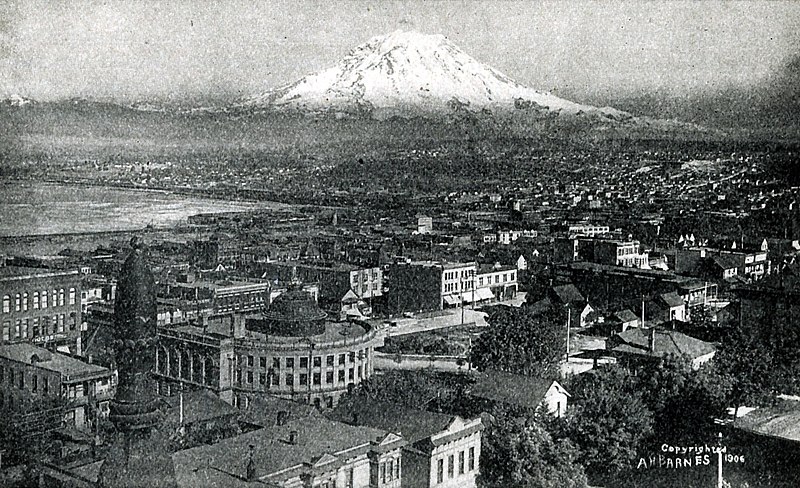 Tacoma is located on Puget Sound, some 20 miles south of Seattle. In 1883, it became the western terminus of the Northern Pacific Railroad. Over the decade from 1880 to 1890, the population increased from just over 1,000 to more than 36,000. It was a boom town, that boom driven principally by the timber trade.