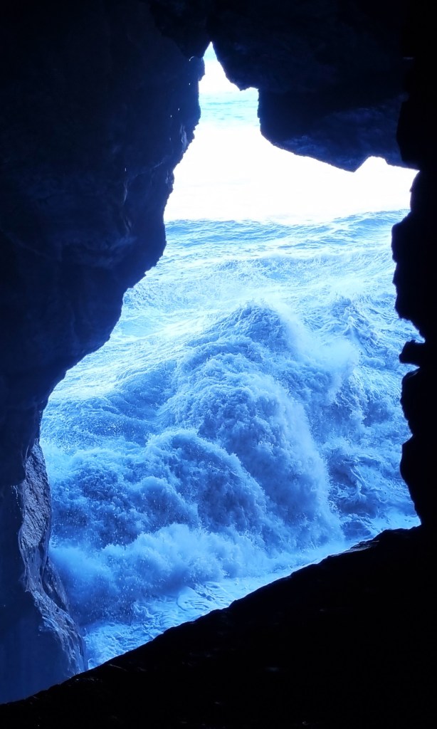 We went beyond the Magic Tea House and into the pedestrian tunnel through the cliffs, known as Tunel das Pocas do Gomes, which echoes to the sound of waves smashing against the rock.