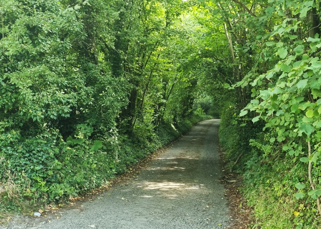 Having adjusted our kit in the bus stop, we were under way by 11.45, initially negotiating this occasionally busy stretch of Beachborough Road, back to the point where the NDW crosses it.