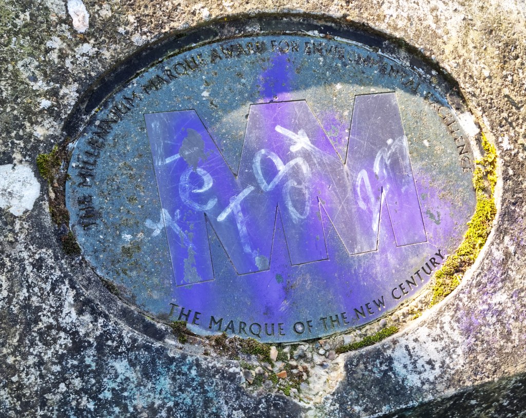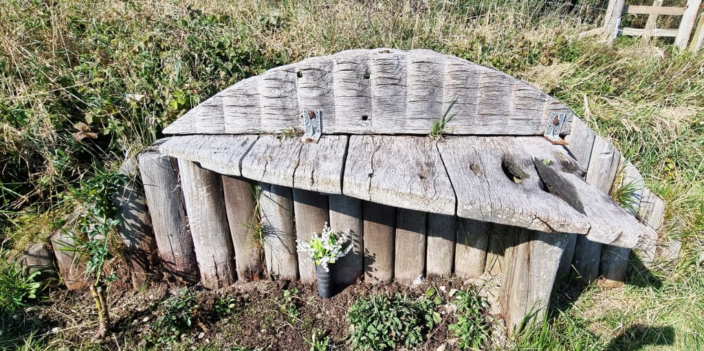 No-one seems quite sure what this one represents, but someone had placed a small vase of flowers underneath, in memory of ‘Mum’.