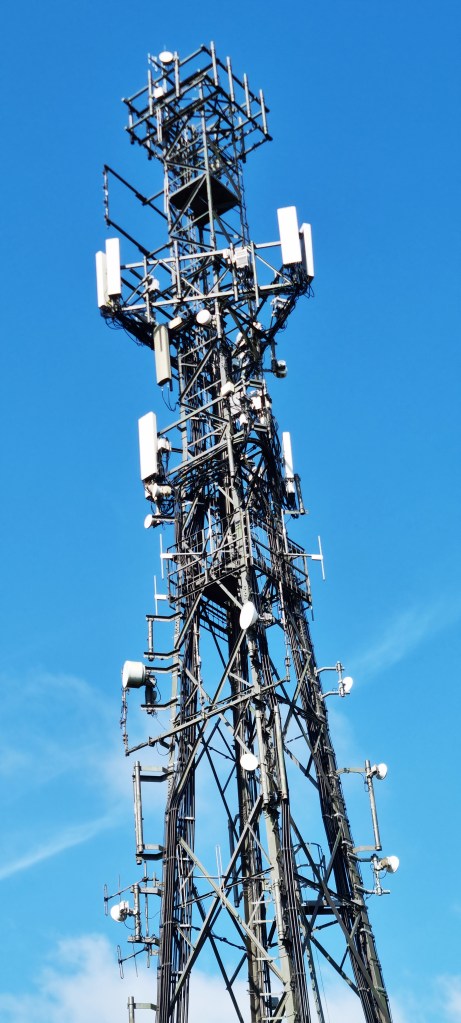 We could see Sugarloaf Hill ahead as we made our way over the A20, buried beneath us, then across the A260 to reach Crete Road East. At the foot of the hill Jacqui encountered her post-lunch dip, but we eventually made it to the top and past the Arqiva radio mast, silhouetted against a vivid blue sky.