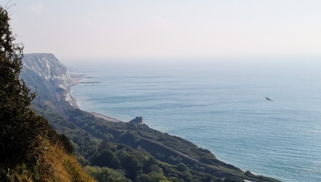 Soon we had drawn abreast of another NDW milestone informing us that we had only two miles left. Then we were climbing Shakespeare Cliff, so named because it features in ‘King Lear’.