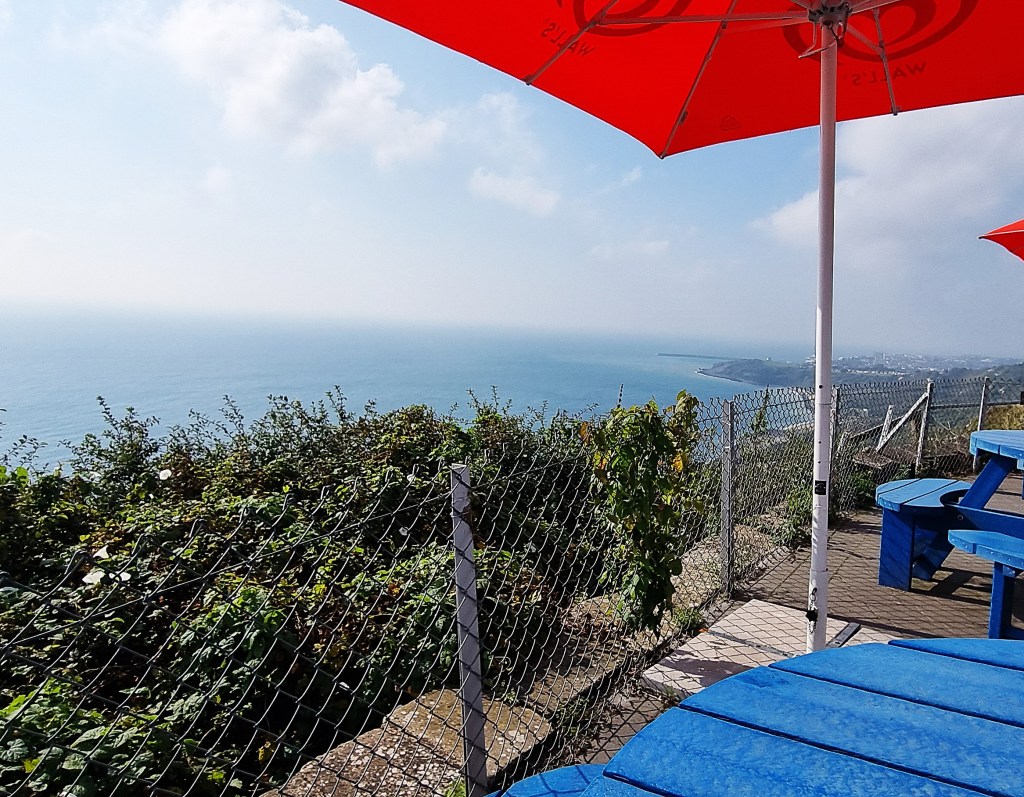 We soon found the cafeteria, on the first floor of the visitor centre behind, consuming our coffee and Victoria sponge cake on its windswept balcony. A volunteer attendant very kindly confirmed that ‘Capel’ rhymes with ‘papal’, rather than ‘chapel’.