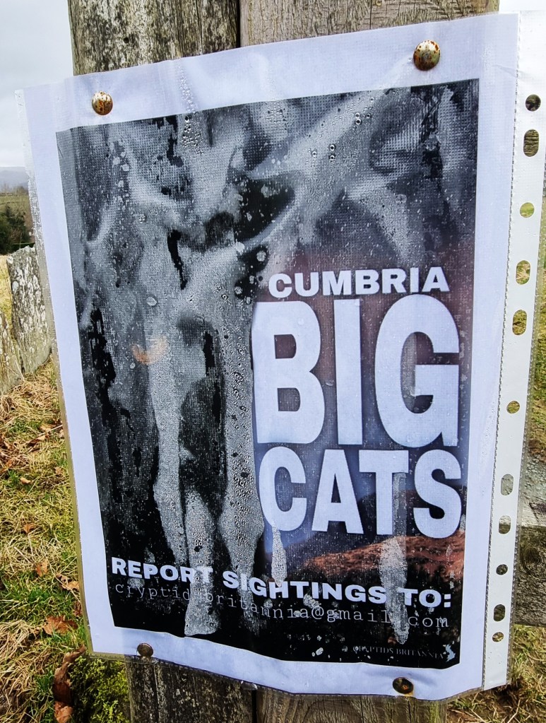 This poster seems to be the work of a teenage student called Harlem Karma, from Lancaster, who claims to have seen a ‘black leopard’ near Hawkshead while travelling on the 555 bus.