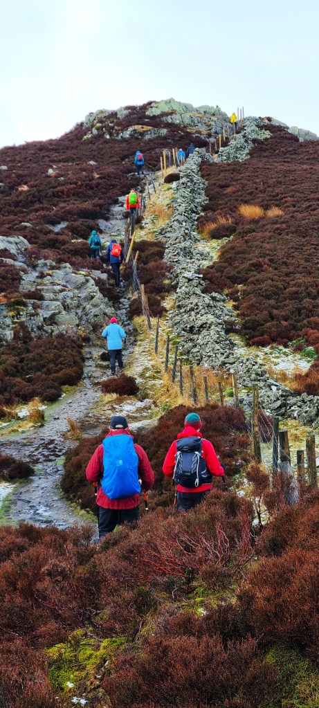 I wasn’t quite sure why we were striding out so purposefully, unless it was to beat the other human traffic up the Old Man. The group’s coherence suffered as a consequence, with several slowing markedly up these lower slopes.