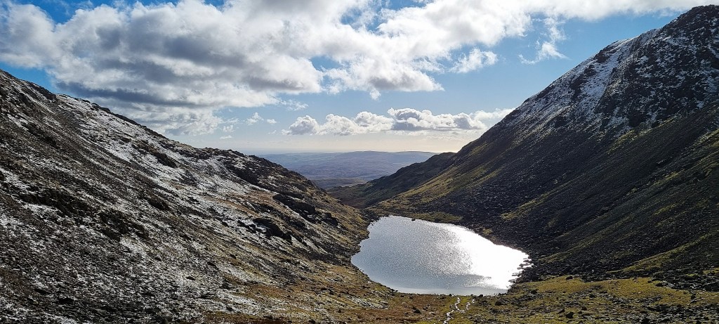 After passing the tarn, the rest of the walk was less picturesque. We reached Coniston shortly after 15:00, via the steep descent from the Walna Scar car park.