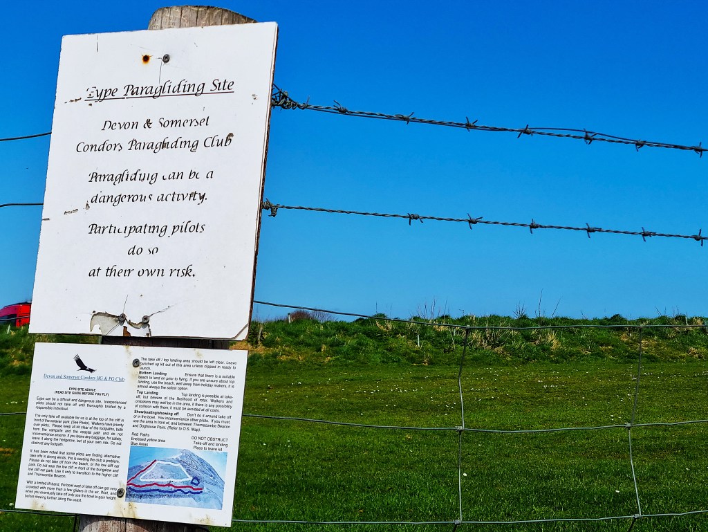 A notice explains that a nearby site is used by the ‘Devon & Somerset Condors Paragliding Club’.