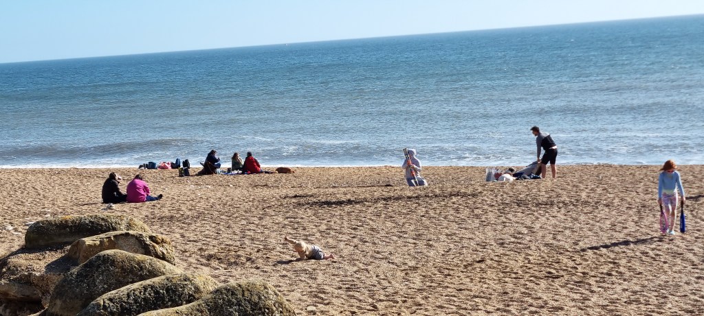 We reached Hive Beach by 09:30, now almost deserted, some half an hour before the Café would reopen. The man from the National Coastwatch lookout, in hi-viz jacket, scrutinised the small waves lapping on the beach before returning to his post.