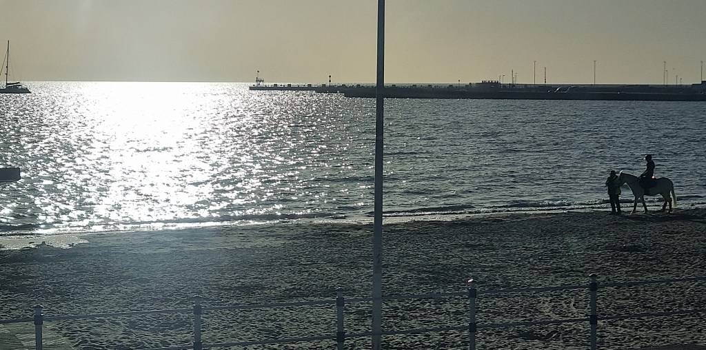 Having arrived a little early to access our apartment, we pulled our suitcases along the Esplanade, stopping at a beach kiosk for coffee and pastries. One or two brave souls were bathing, but most other beachgoers were walking their dogs.