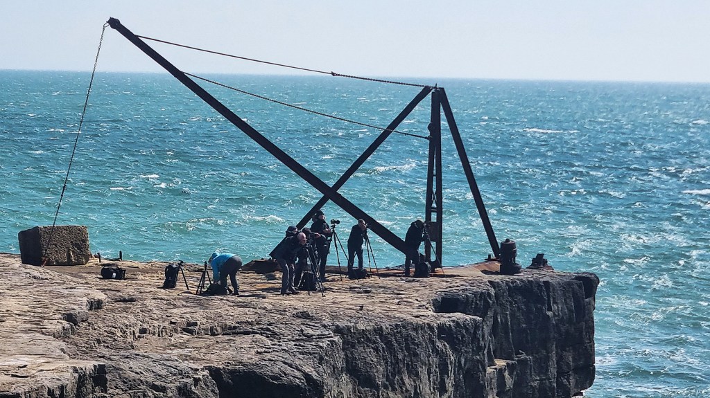 While we munched, a small vessel rounded the Bill, fairly close to the shore. But this didn’t seem to provide the money shot for the assembled photographers, standing poised behind their tripods below Red Crane.