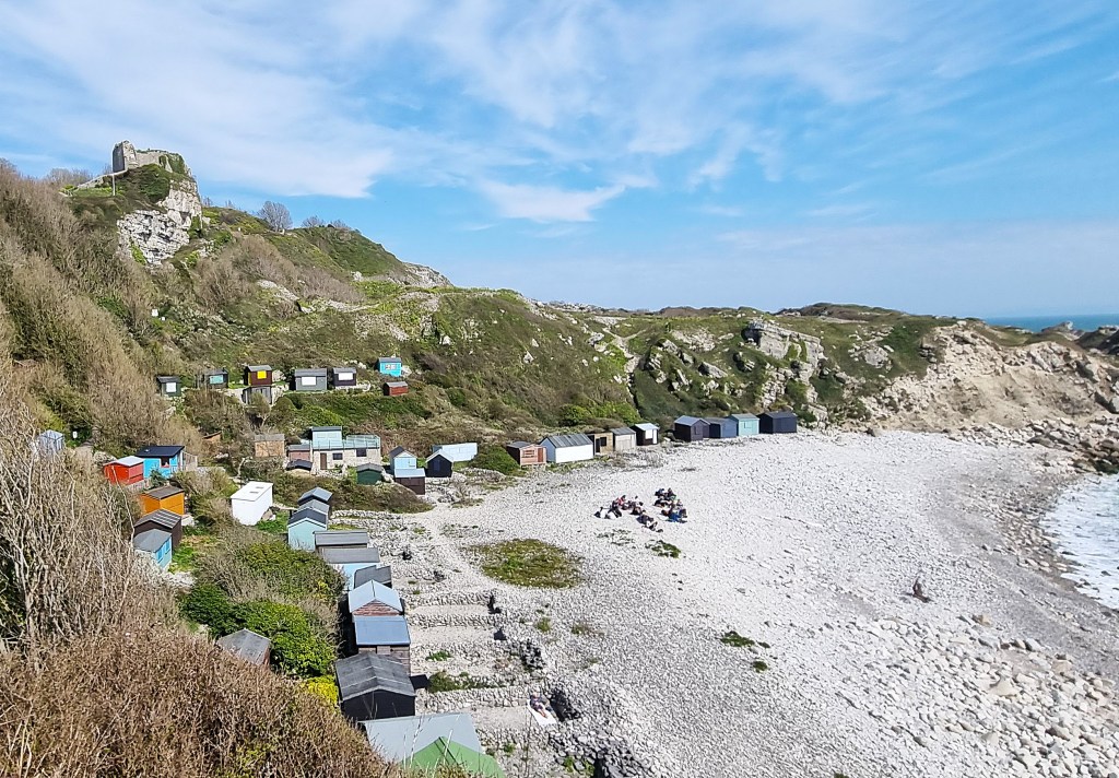 Soon we had entered the undercliff and were descending through the heavy undergrowth to secluded Church Ope Cove, where there is a further collection of residential beach huts.