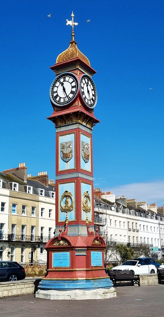A little further down, the beach donkeys stood in readiness for their first customers. The Jubilee Clock Tower, constructed in 1887, looked resplendent in the bright morning sunlight.
