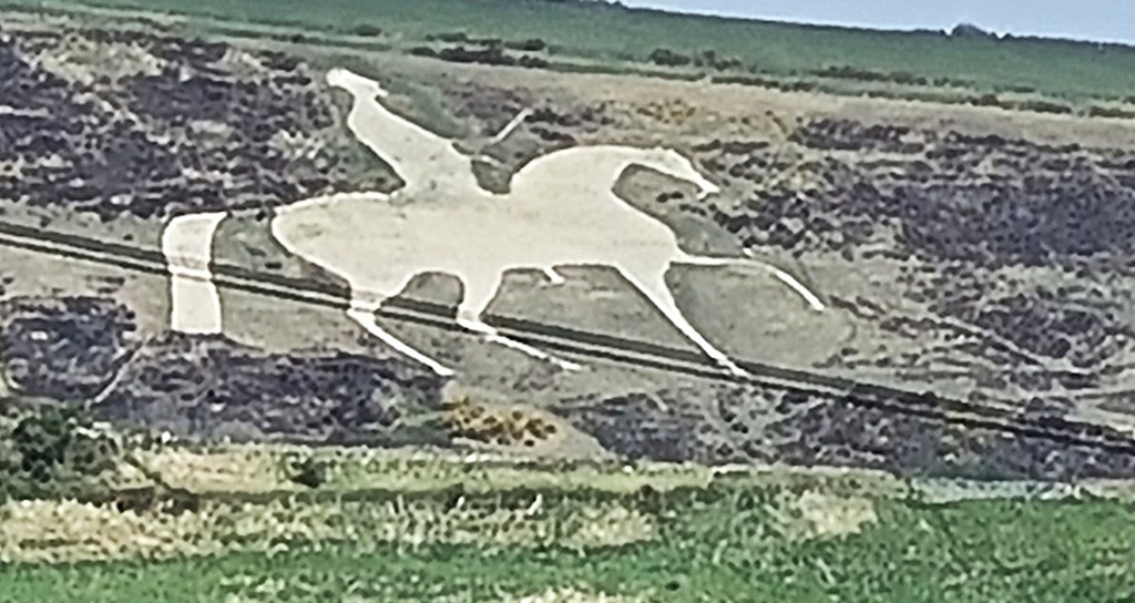 Our route continued across fields, rounding Redcliff Point and passing close by the PGL facility at Osmington Bay. Inland, there is the Osmington White Horse, cut into Osmington Hill in 1808 to celebrate the regular visits made by George III.